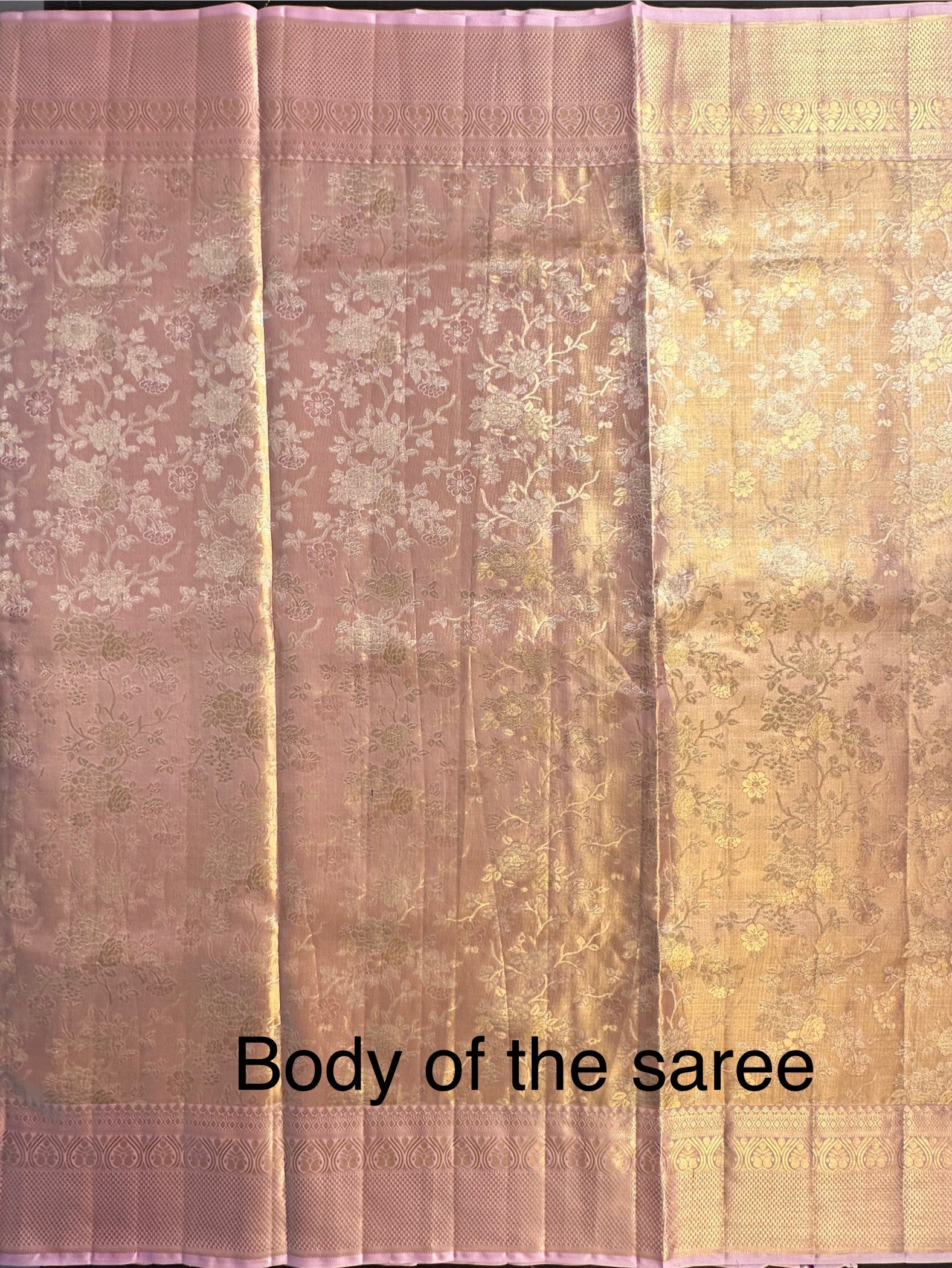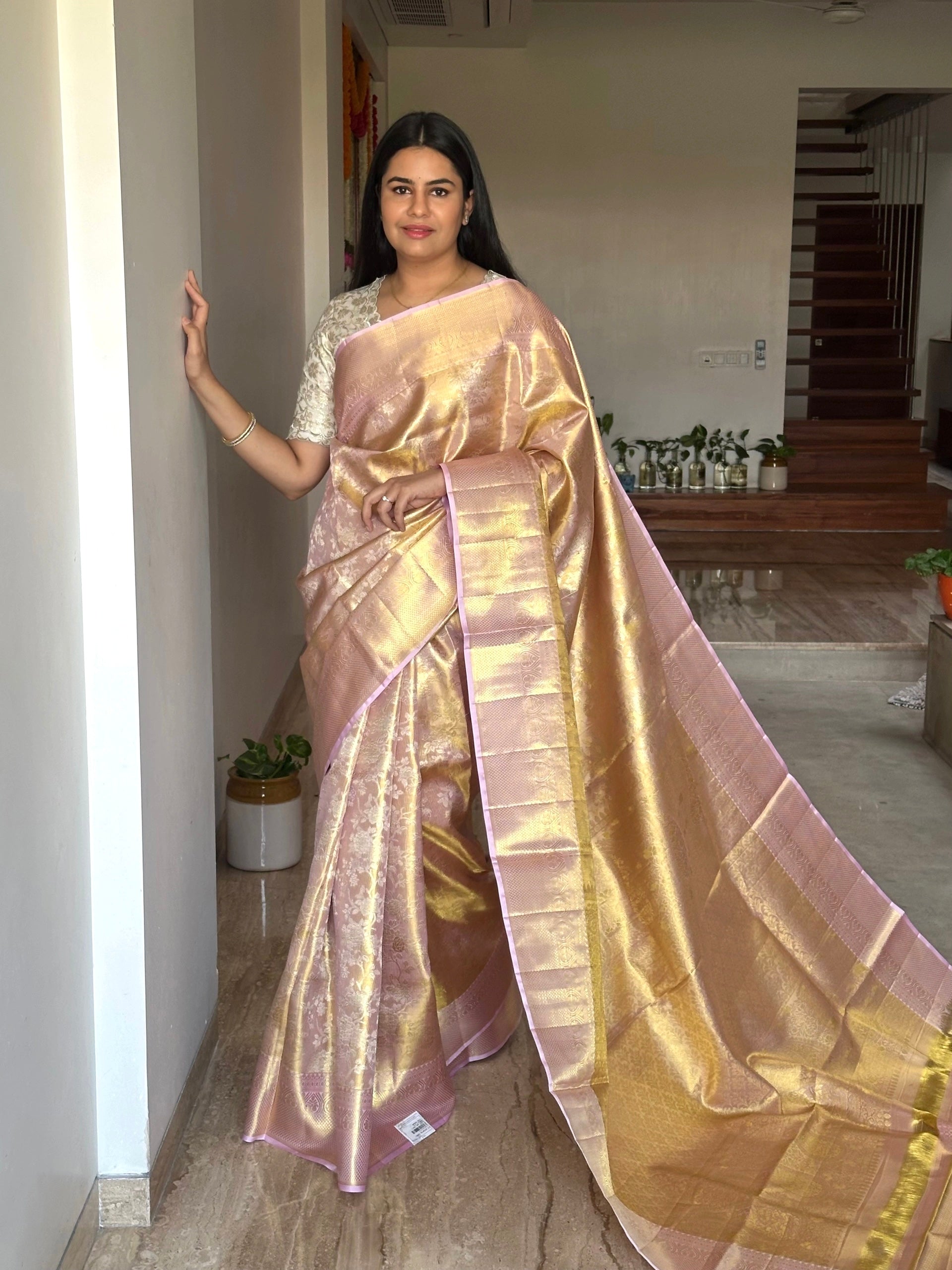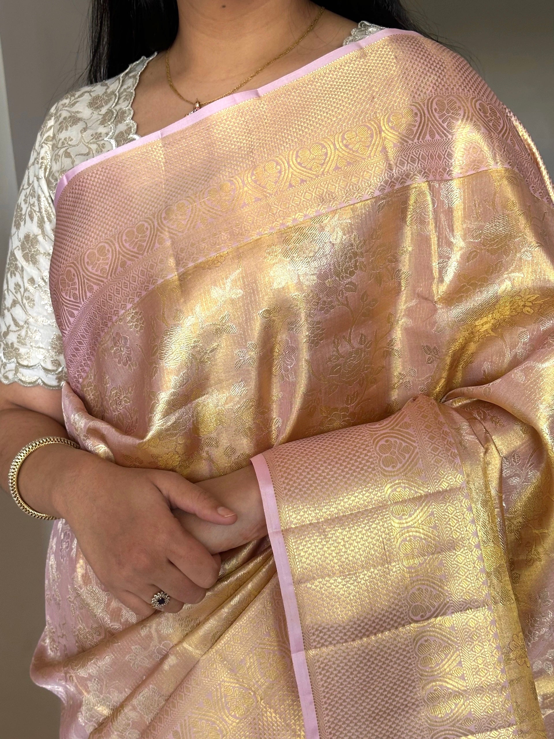 Baby Pink Handloom Jamawar Pure Tissue Silk Saree