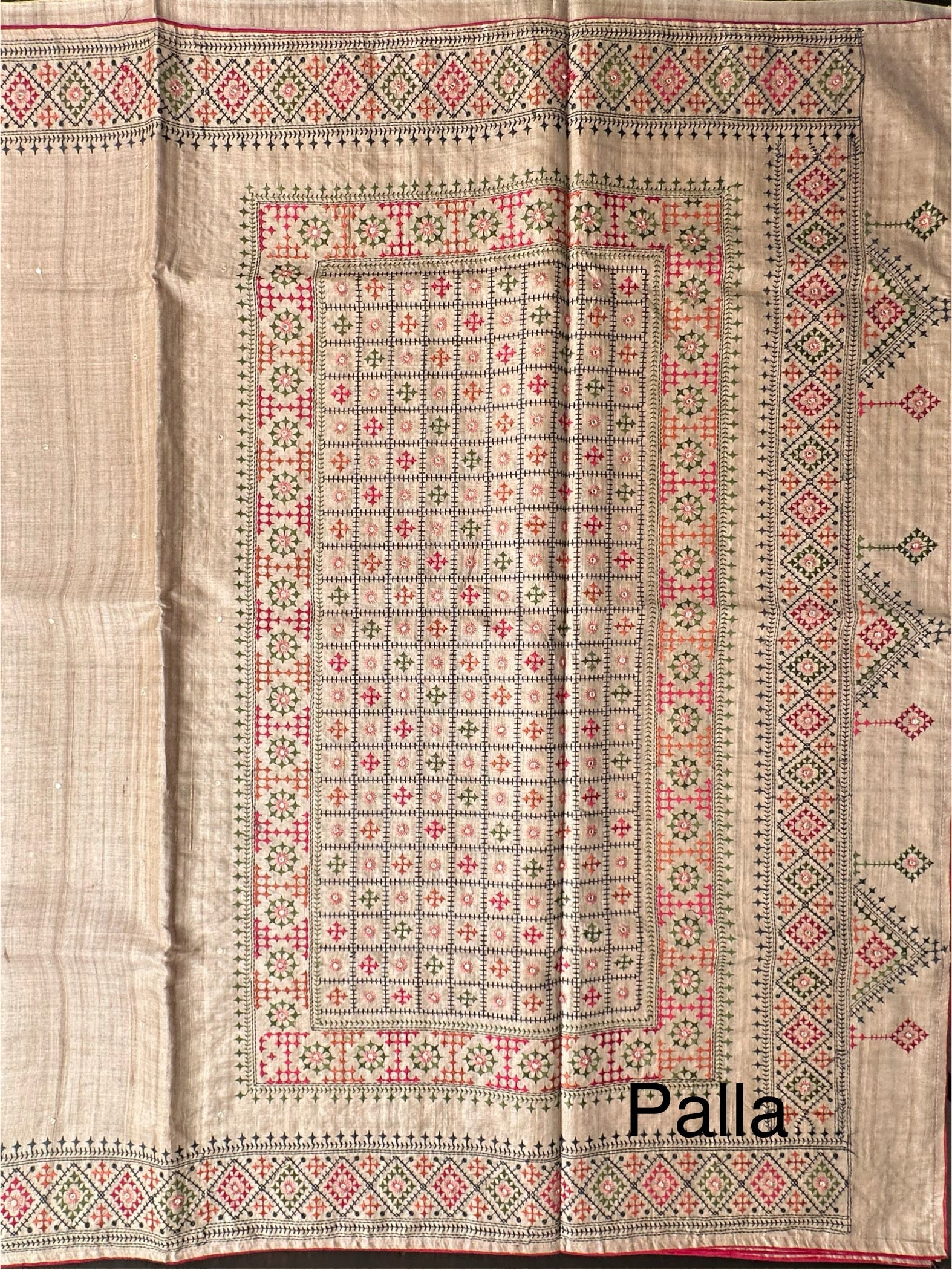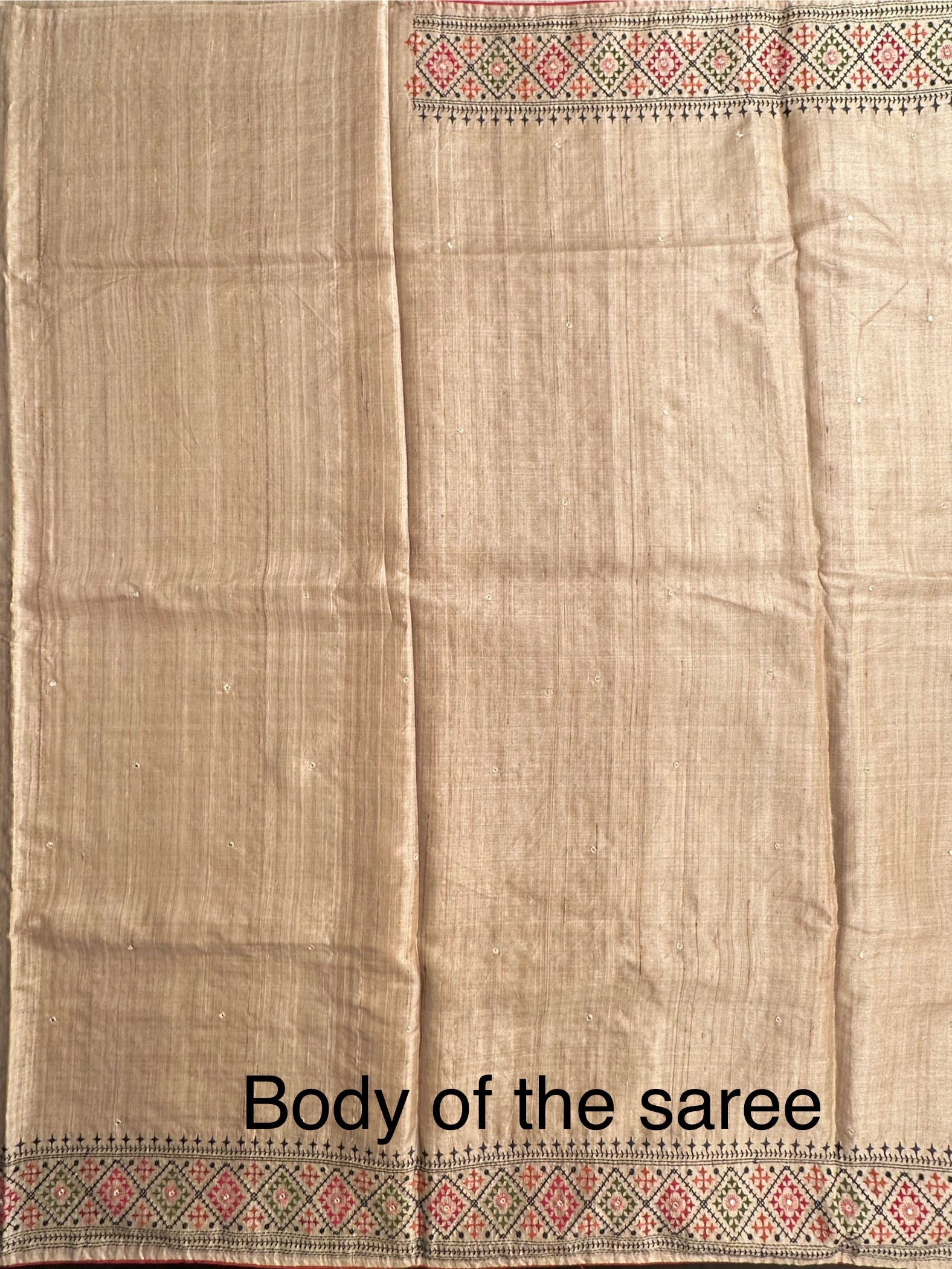 Style: Handloom Tussar Silk Saree with Embroidery Mirror Work