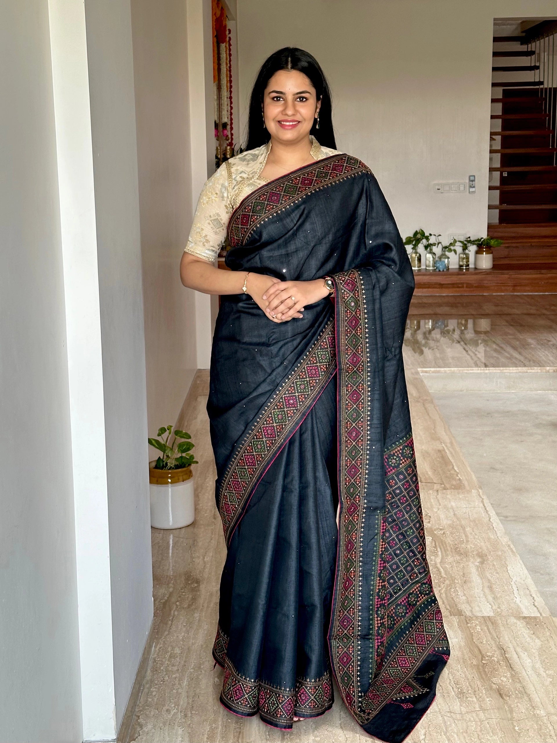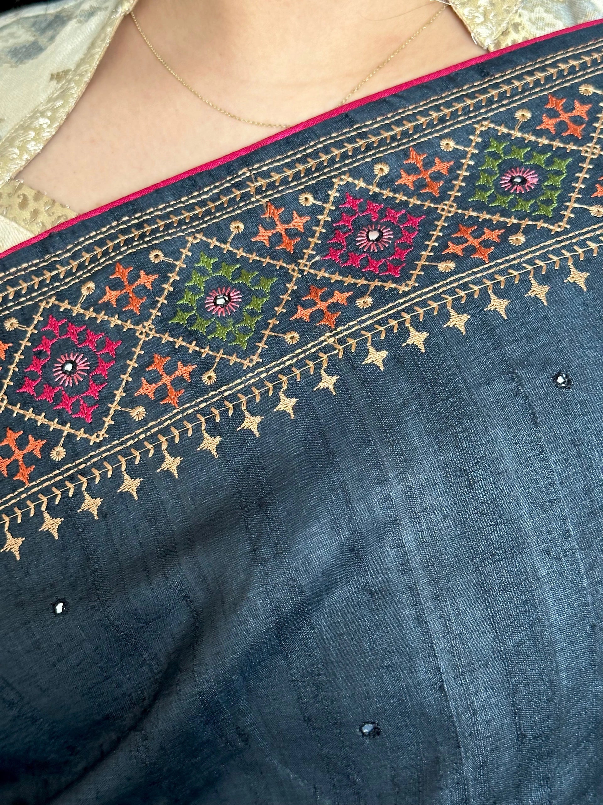 Style: Handloom Tussar Silk Saree with Embroidery Mirror Work