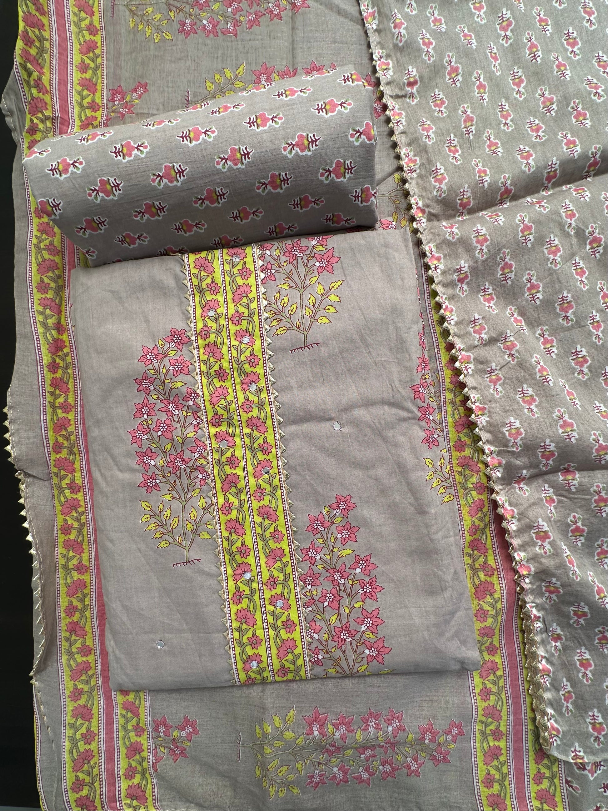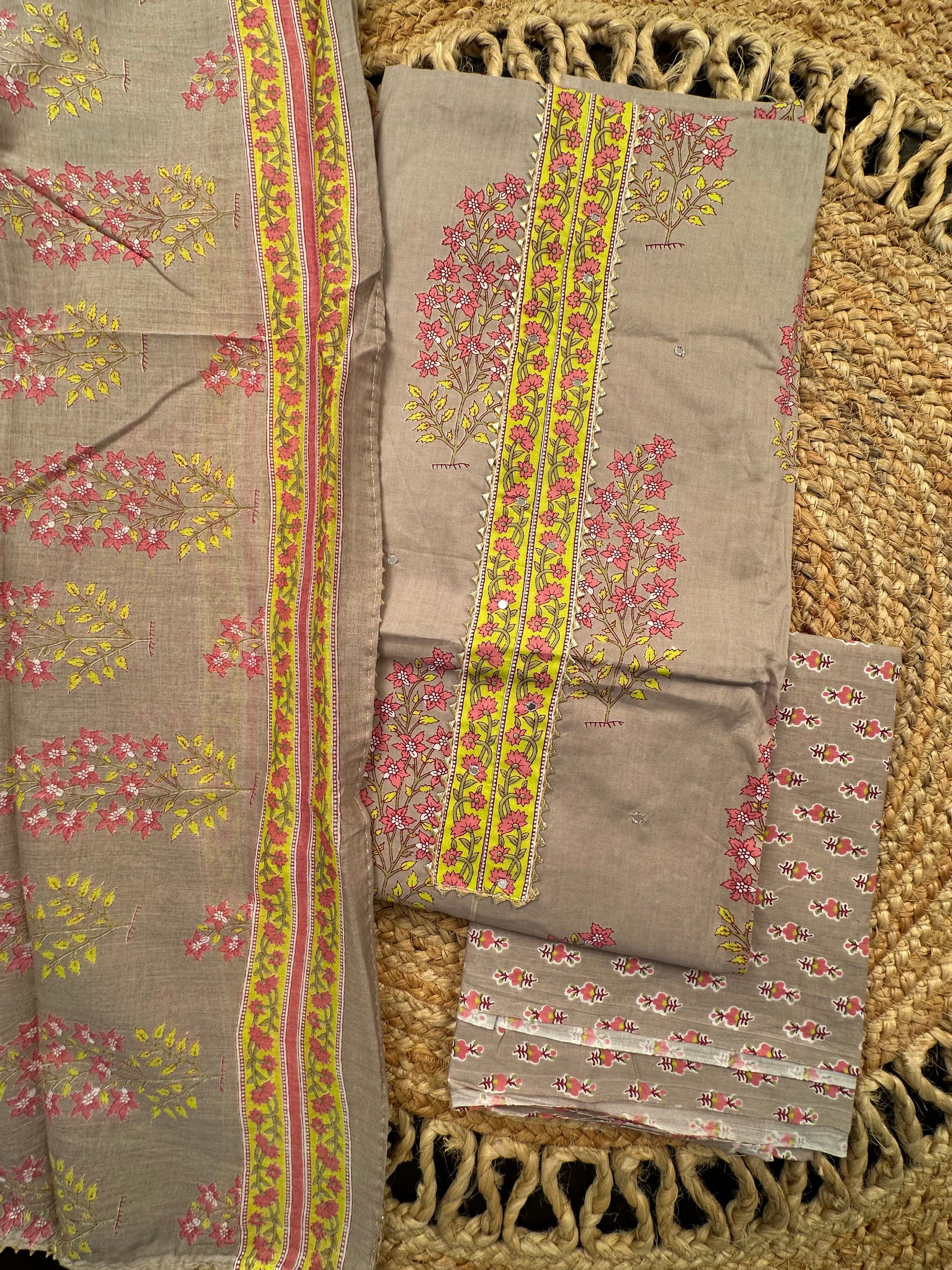 Concept: Jaipuri Necktie Cotton suit with Cotton Dupatta