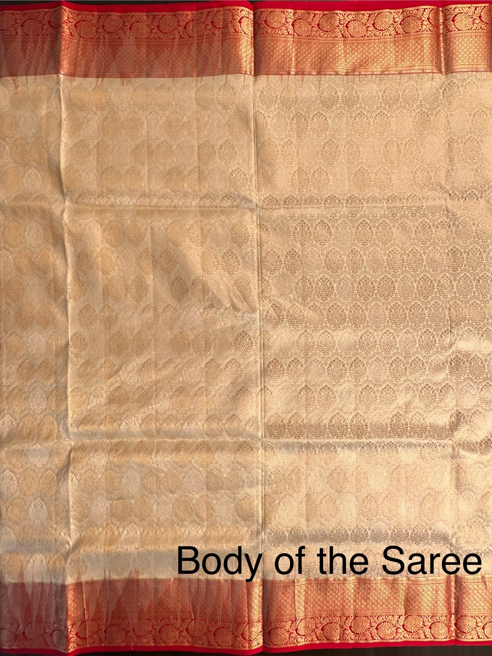 Cream-Red Handloom Kanjivaram Jamawar Pure Silk Saree