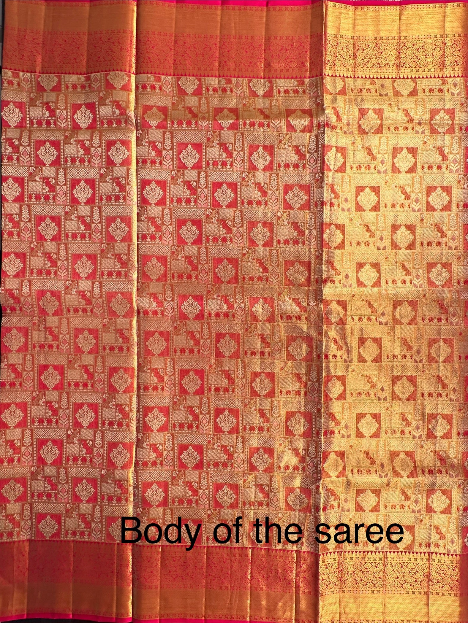 Golden-Rani Handloom Jamawar Pure Tissue Silk Saree