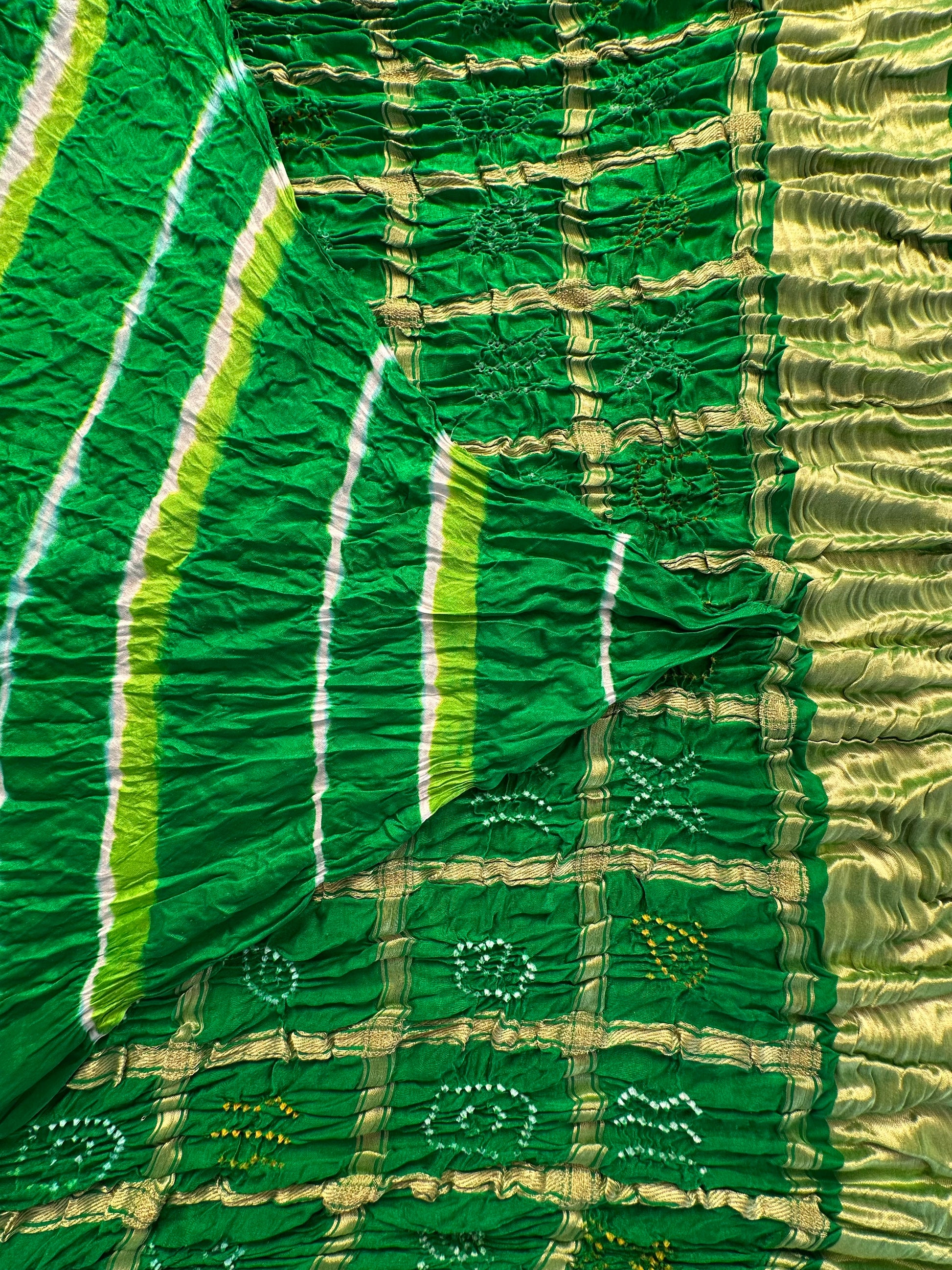 Green Leheriya Gharchola Gajji Silk Saree