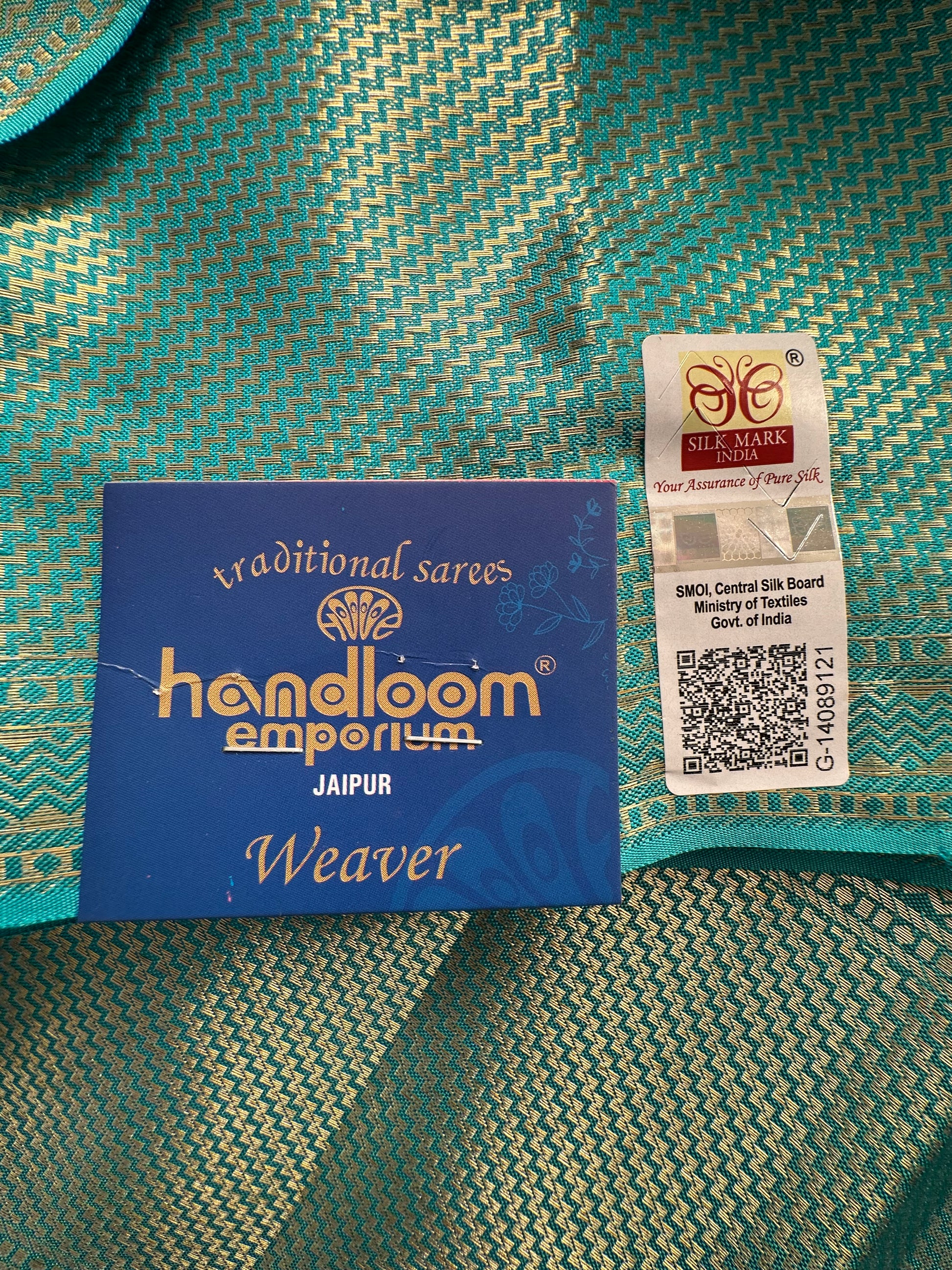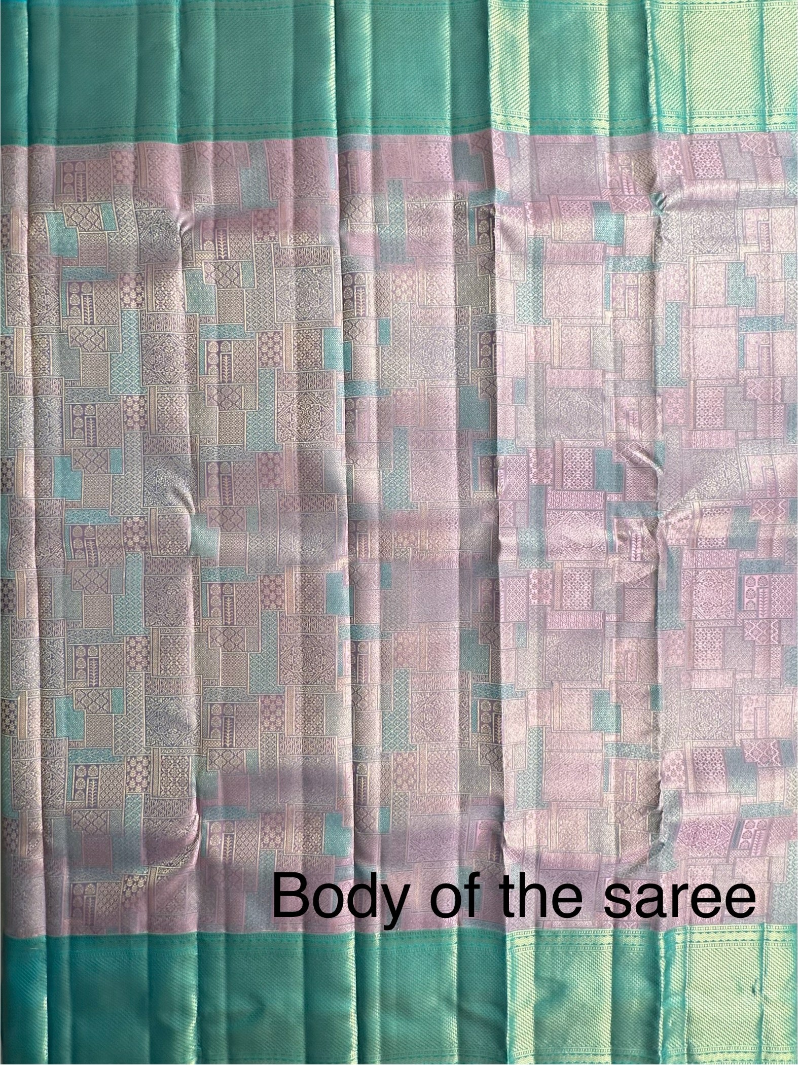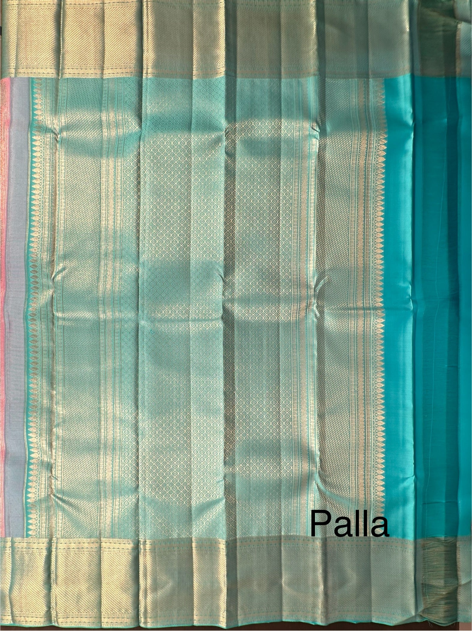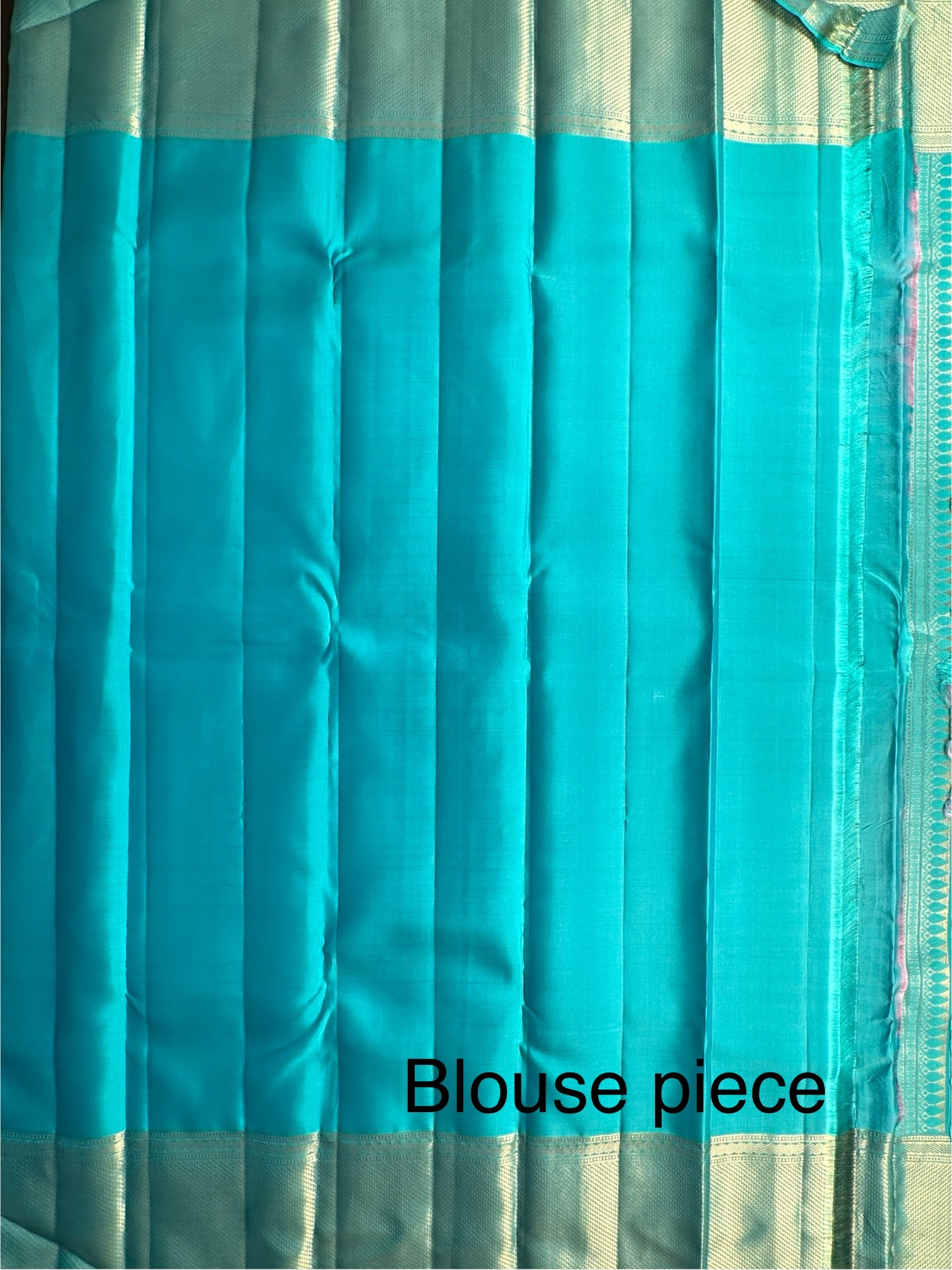 Pink-Firozi Handloom Kanjivaram Jamawar Pure Silk Saree