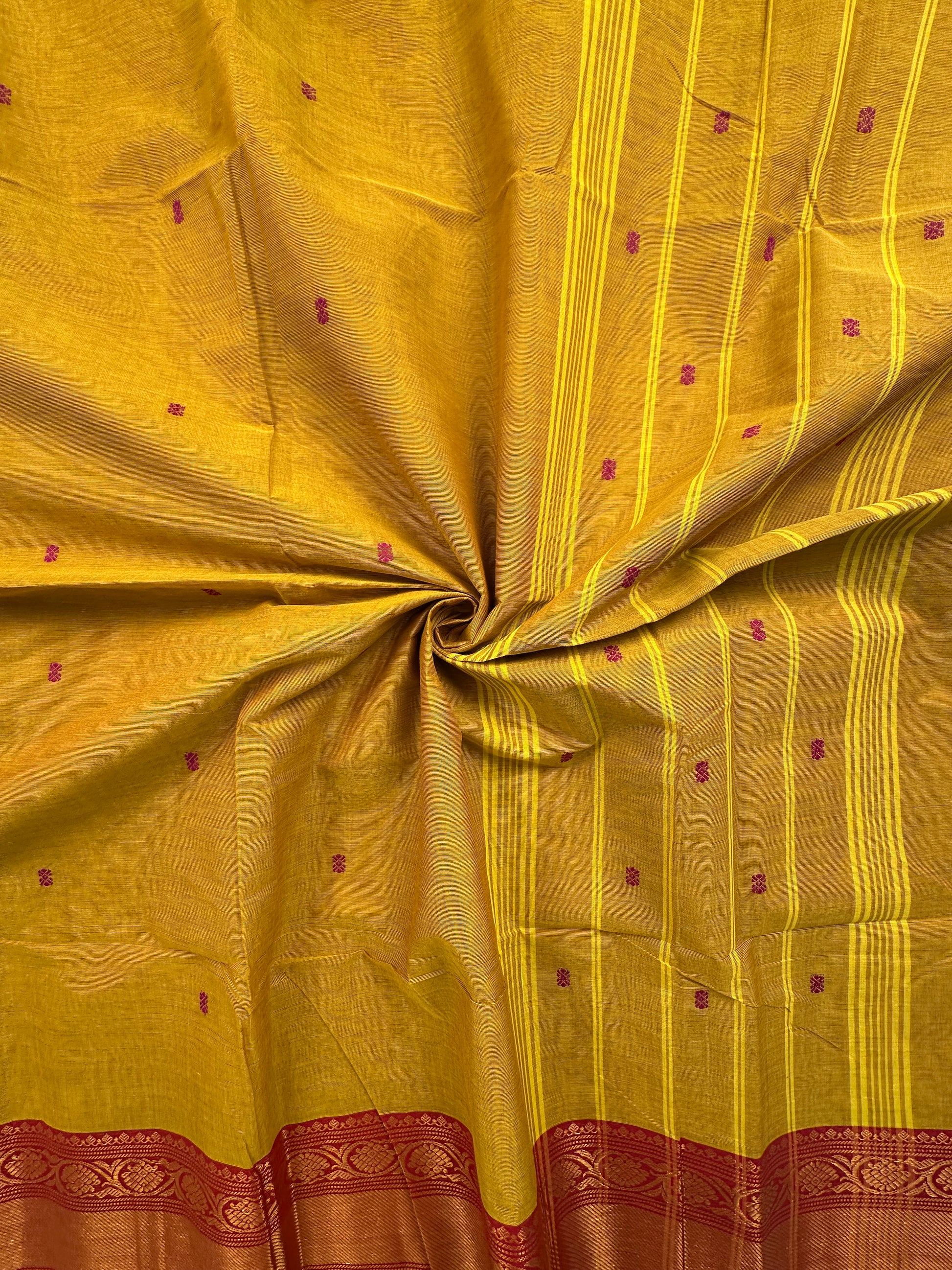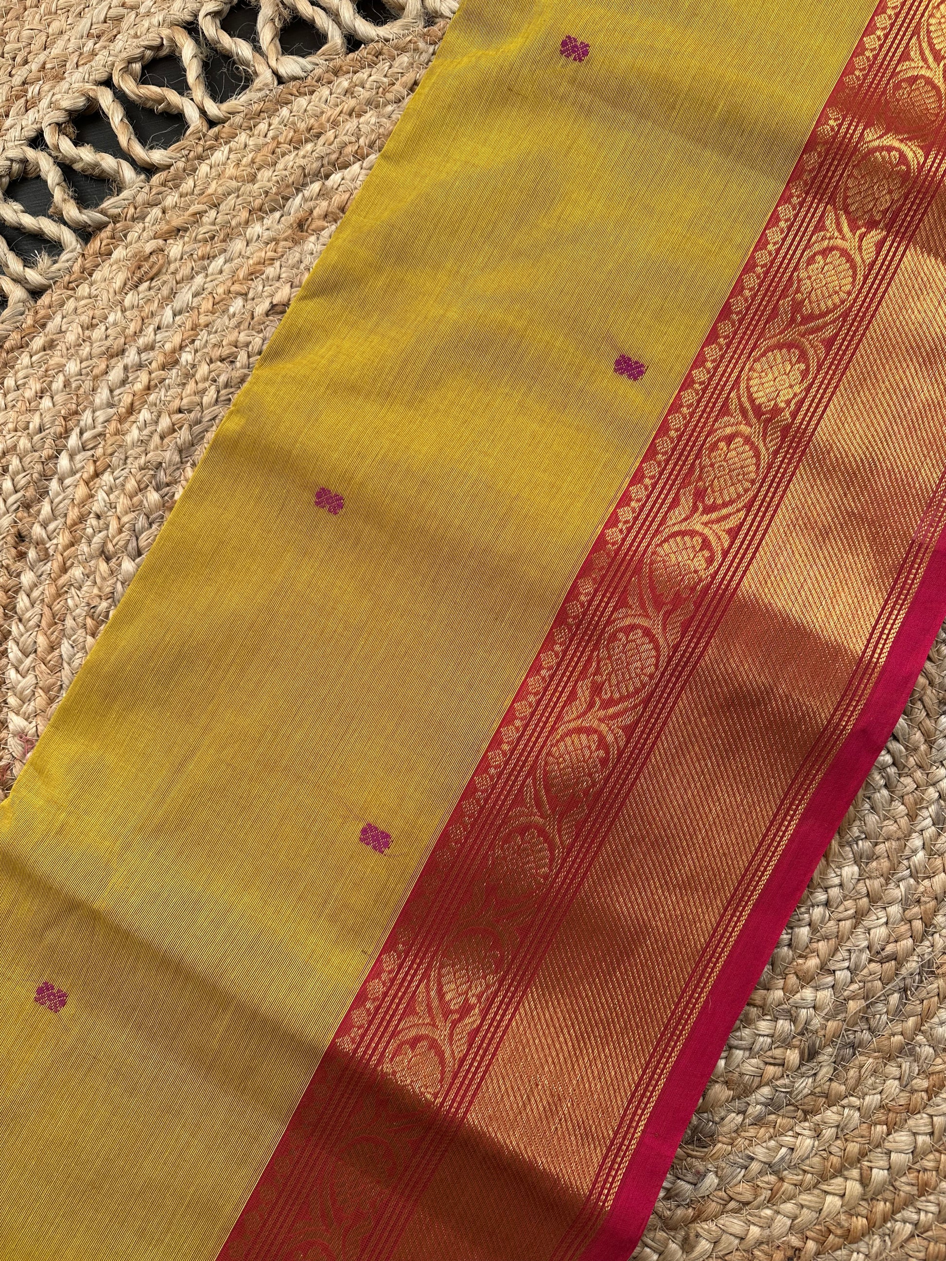 Weaving discontinuations are common in handloom sarees (read: handwoven sarees), they are not defects, It’s the nature of handloom sarees.