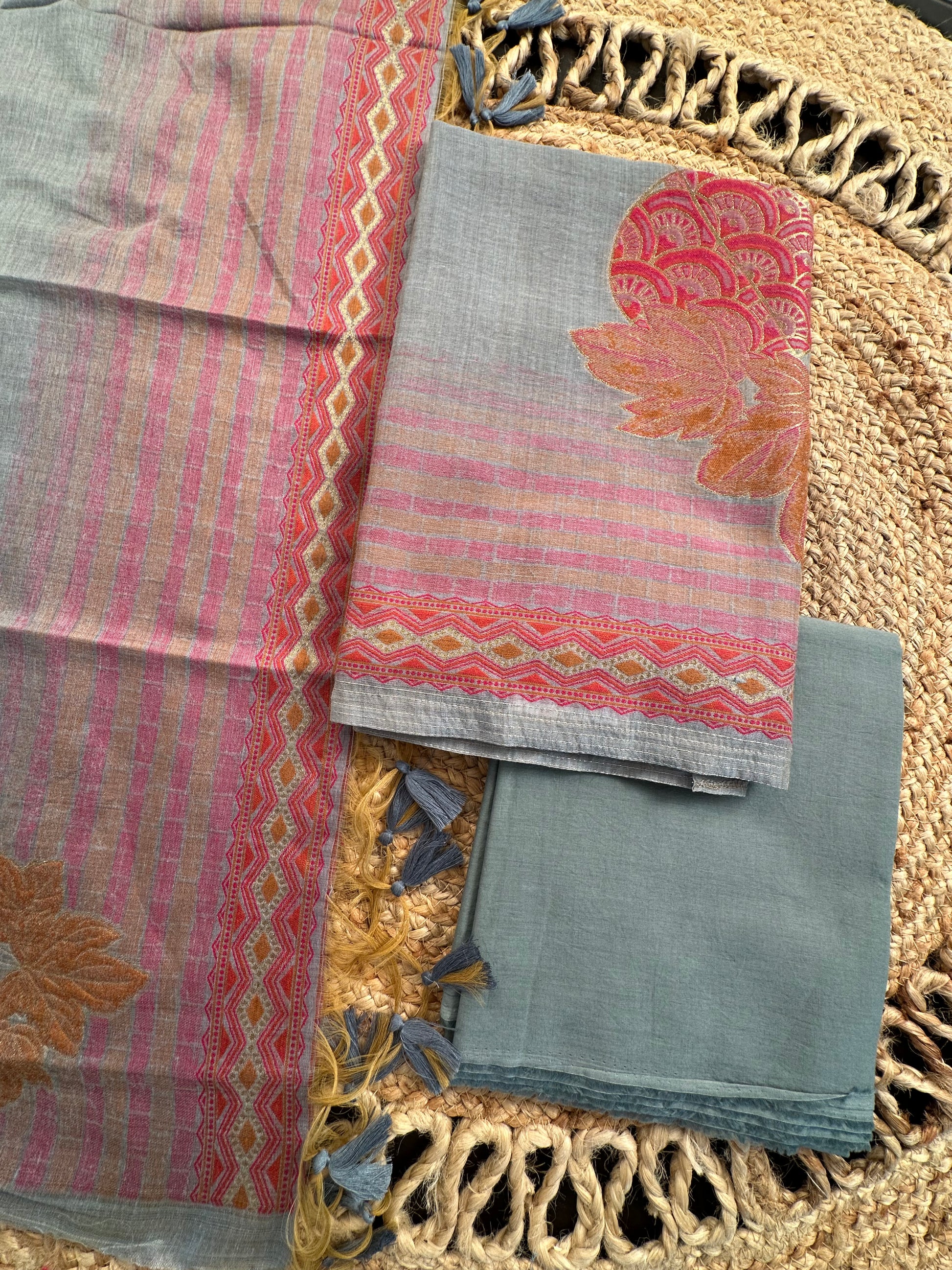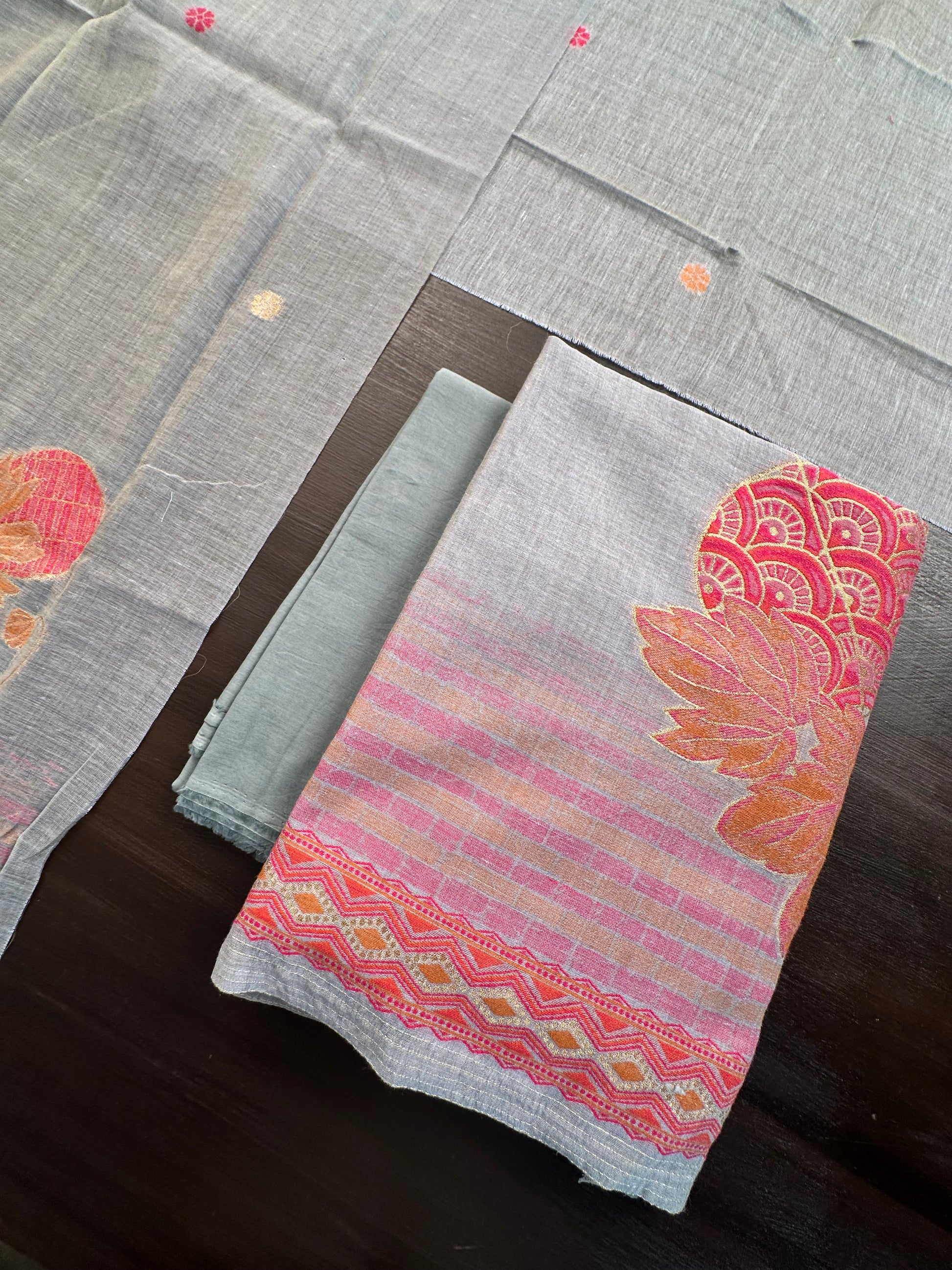 Grey Jamdani Cotton 3-Piece Suit
