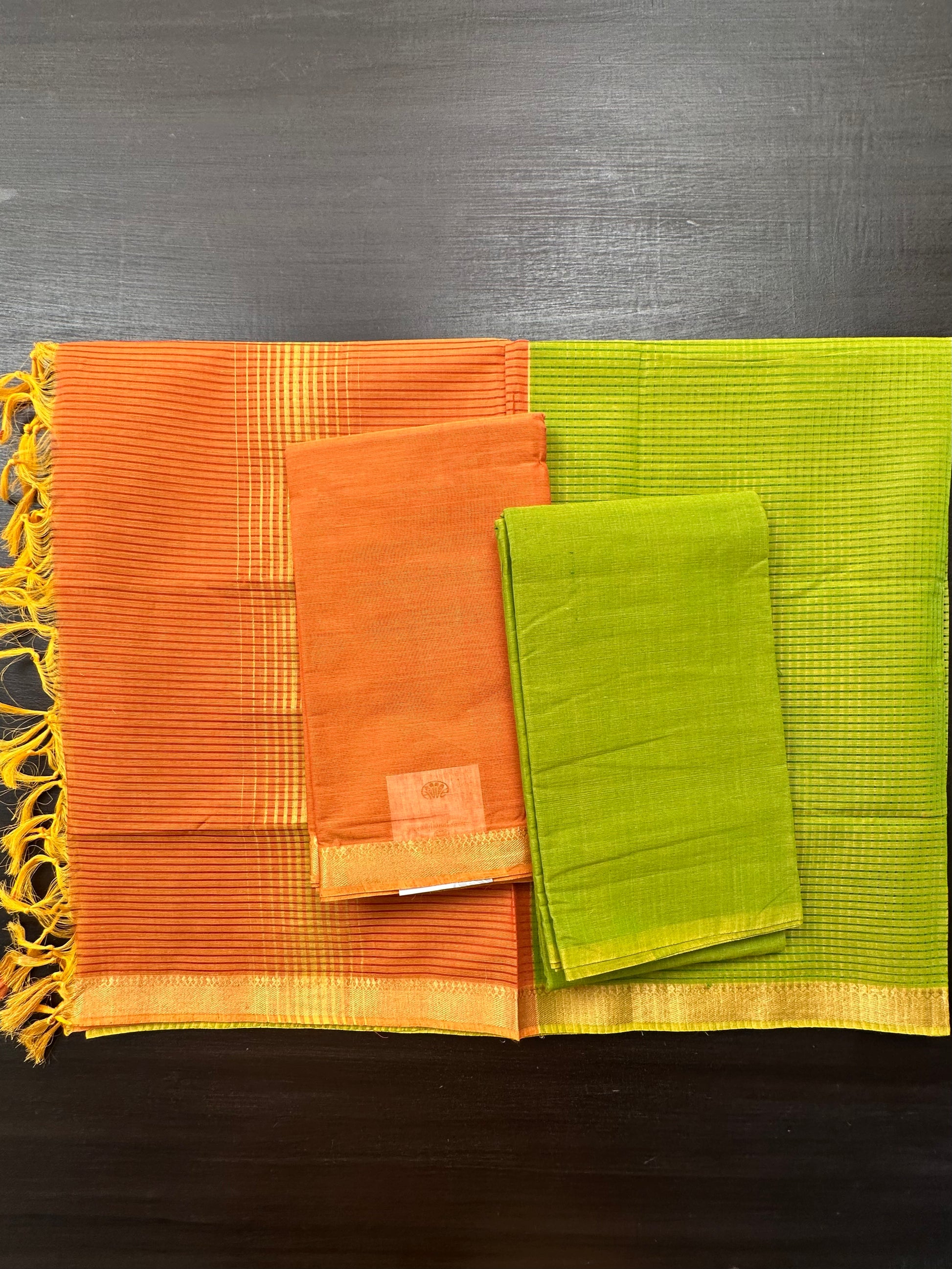 Mustard-Green Mangalgiri Pure Cotton Unstitched 3-Piece Suit