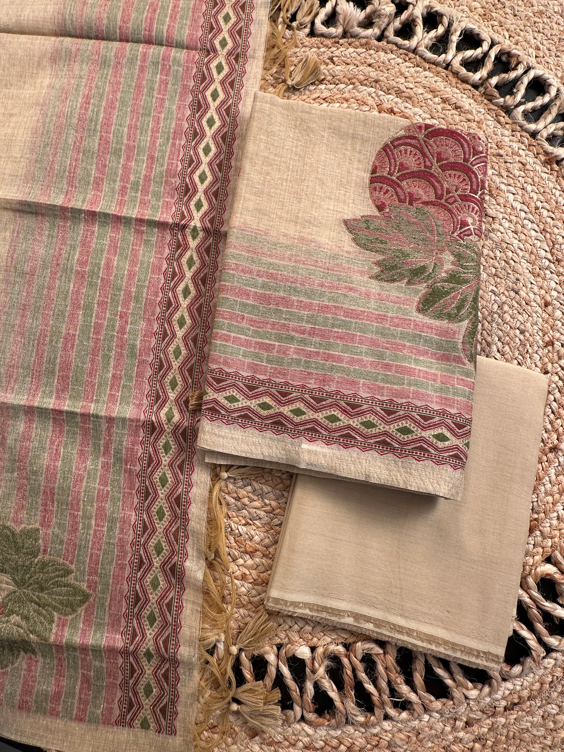 Beige Jamdani Cotton 3-Piece Suit