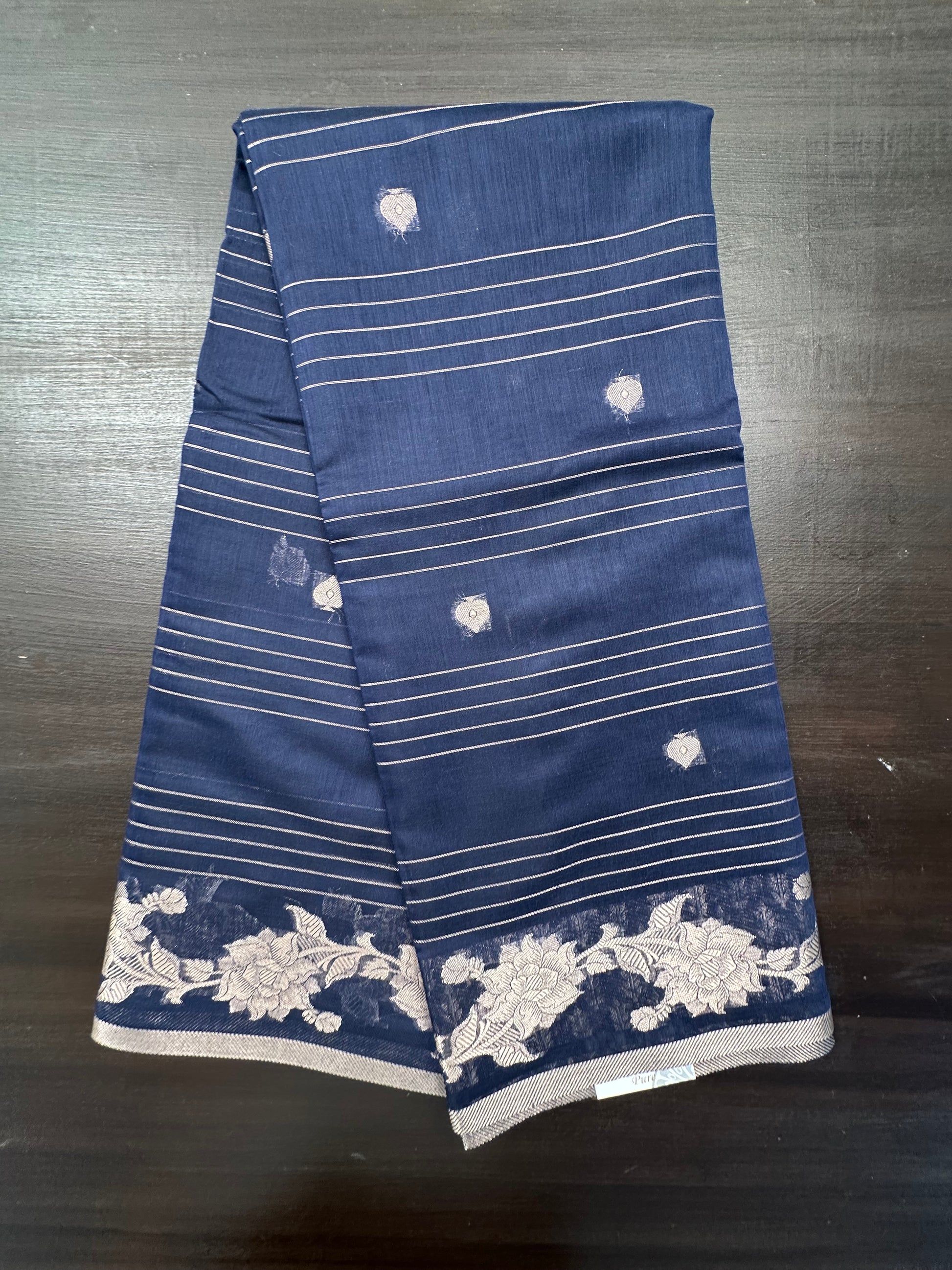 Navy Blue Chanderi Cotton Saree