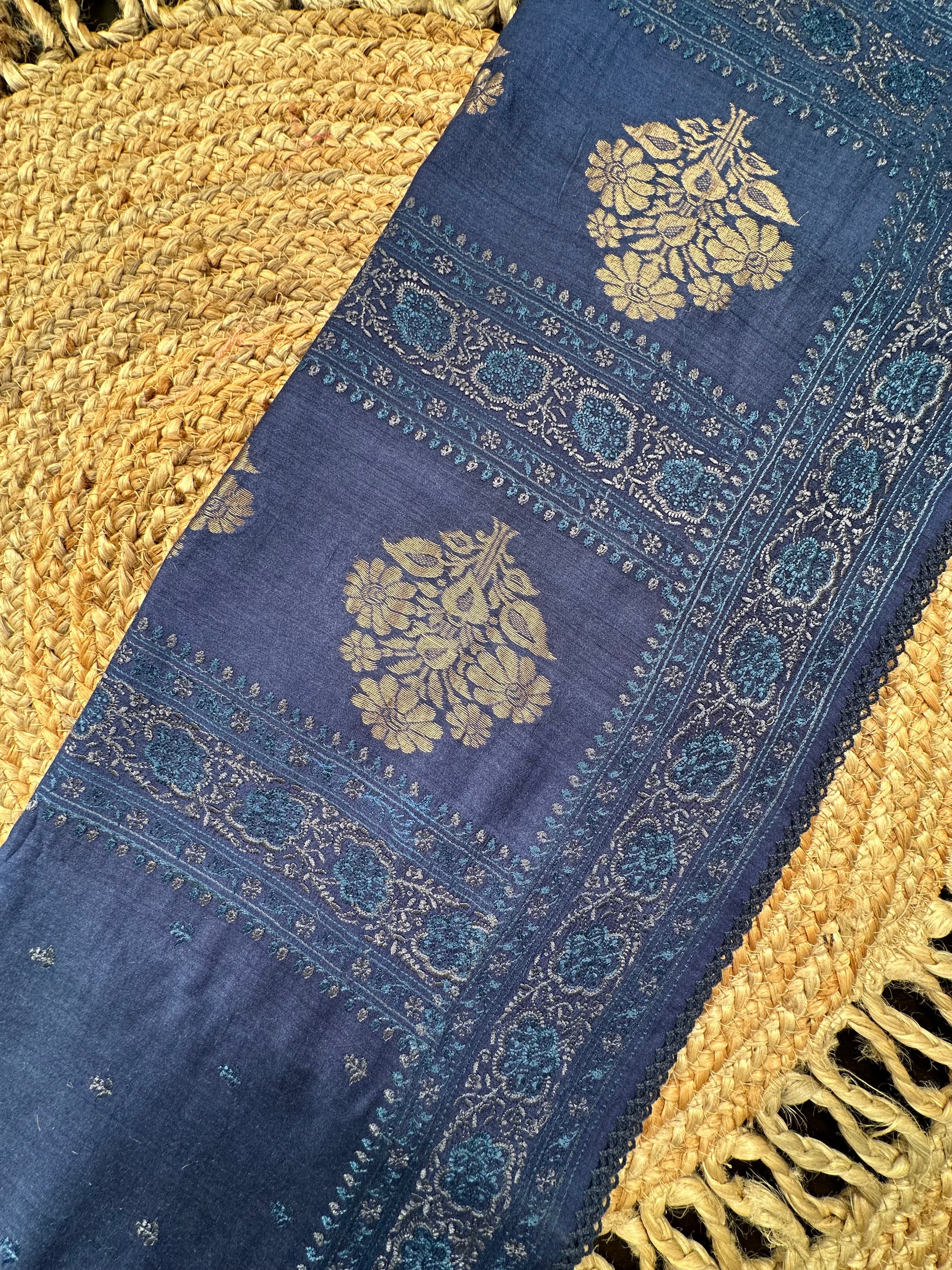 Navy Blue Muga Silk Saree