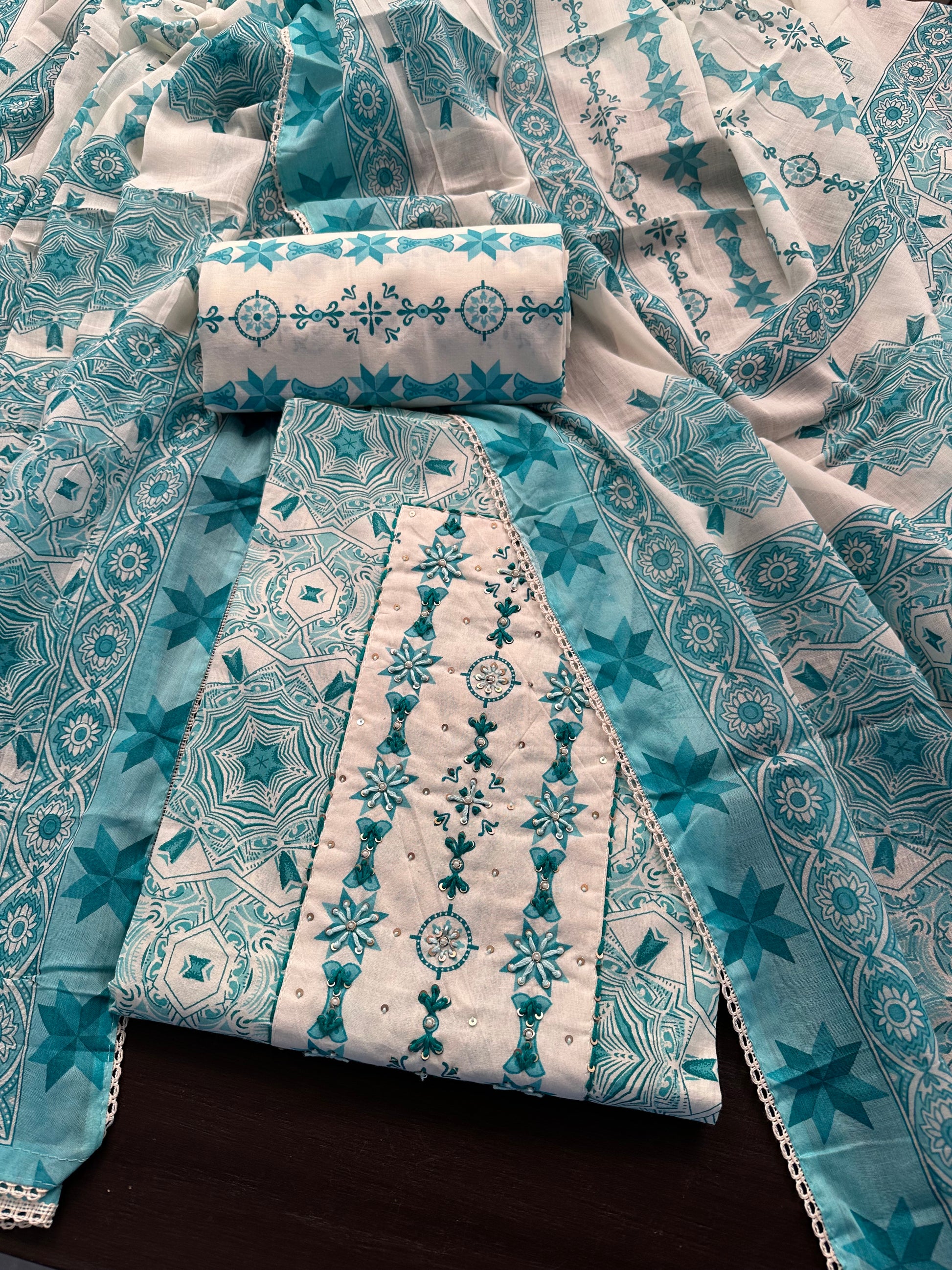 3. Adjustable Lengths: Unstitched pieces provide the freedom to customize the length of the salwar and Kurta catering to different preferences and body types.