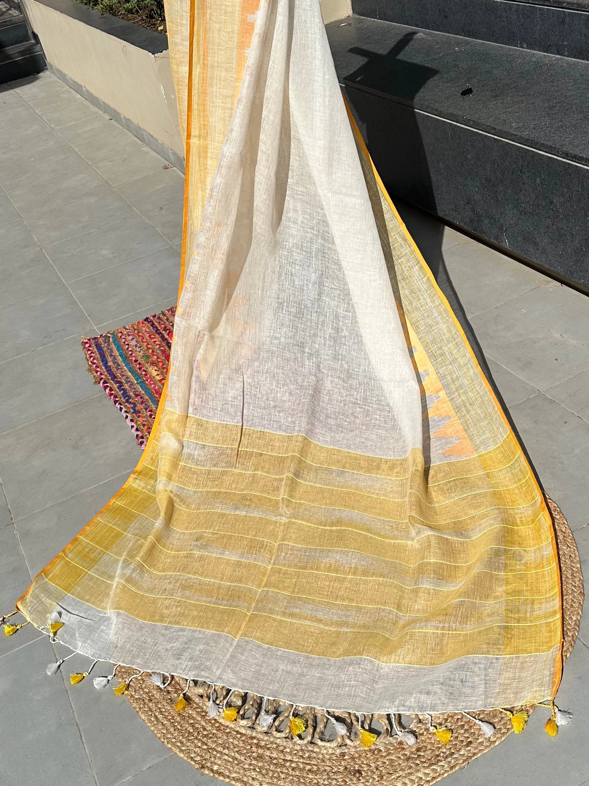 Off White-Yellow Linen Saree