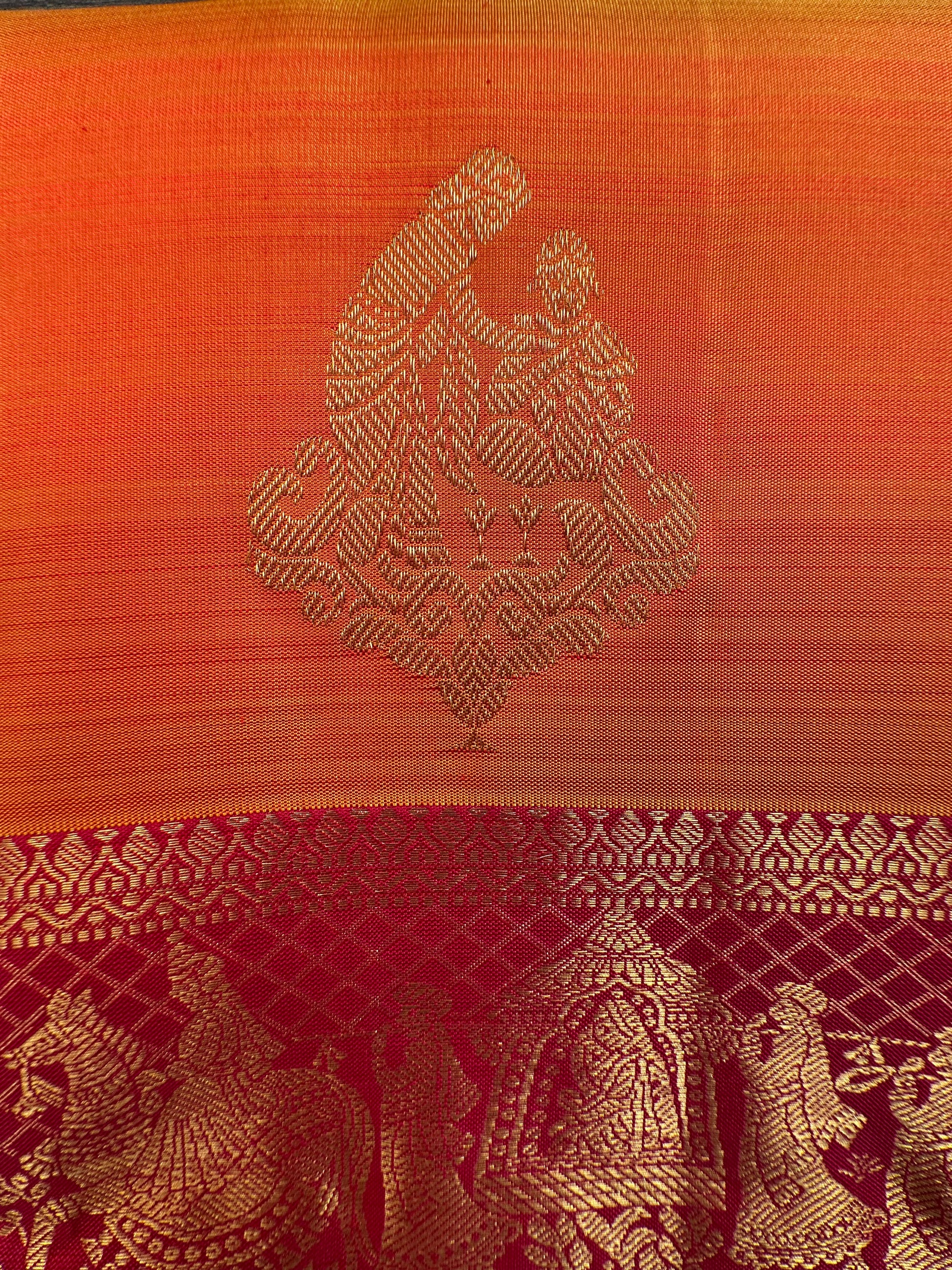 Orange-Rani Handloom Kanjivaram Pure Silk Saree