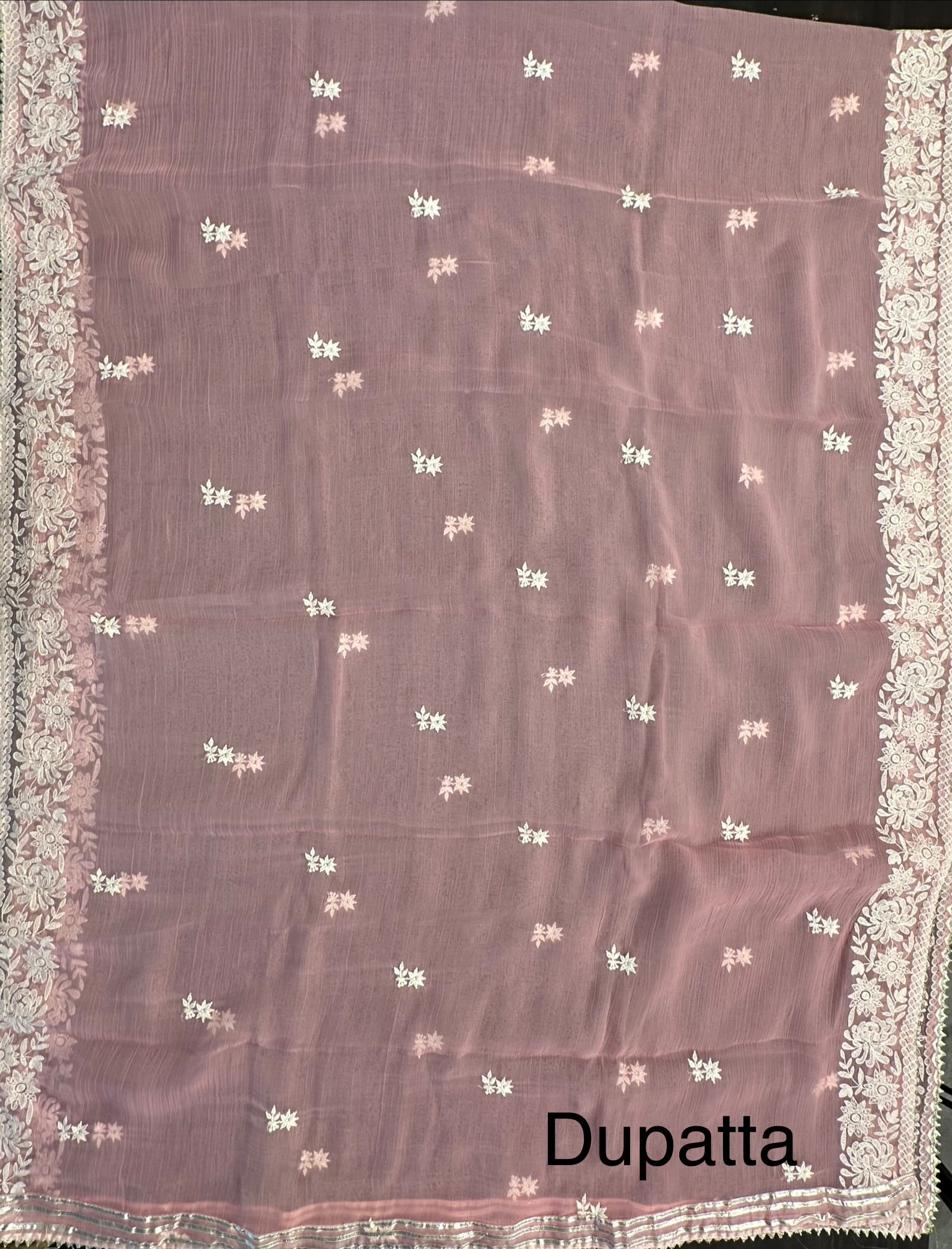 Concept:: Artificial Organza Suit With Neck Hand Work