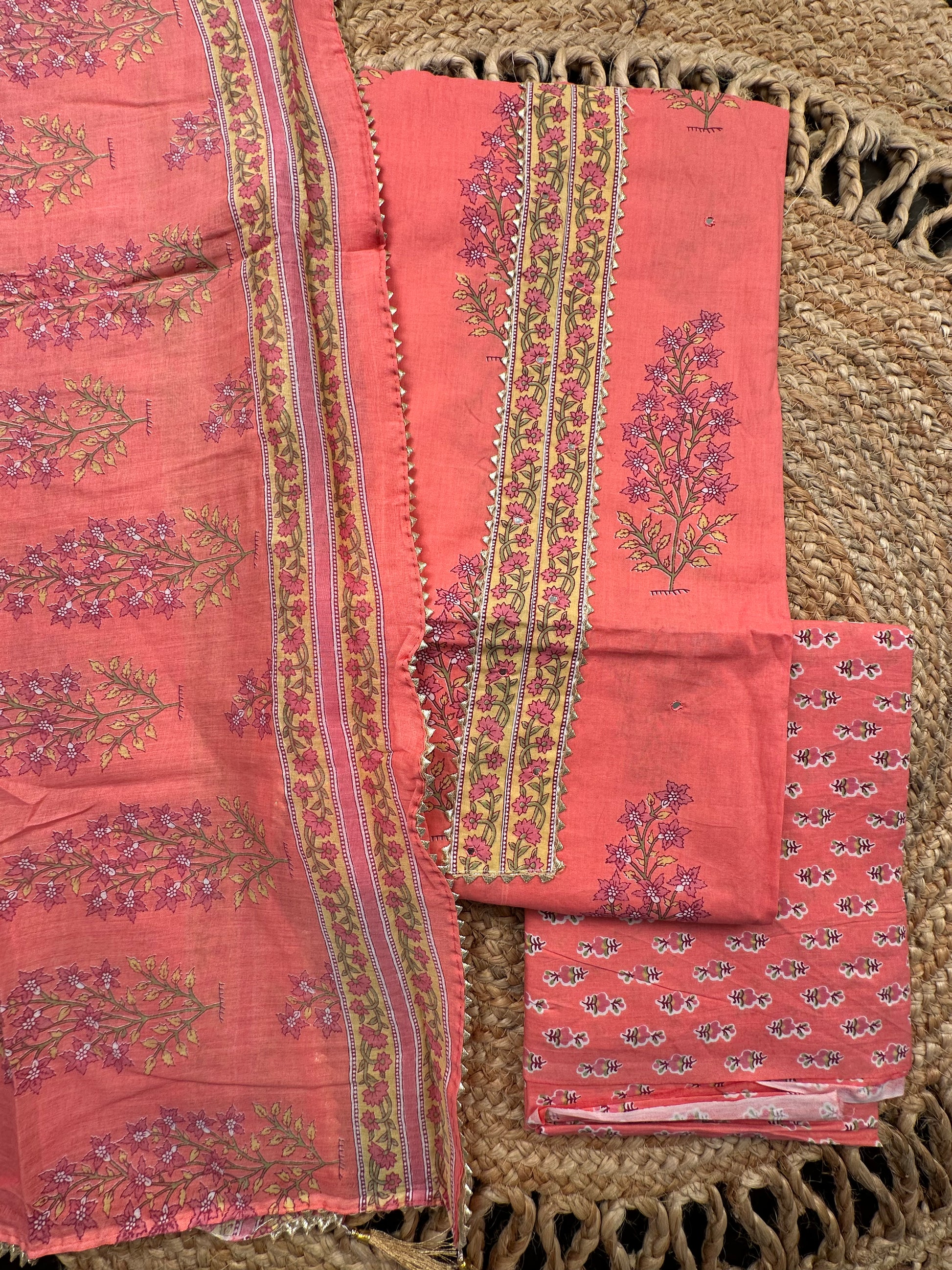 Concept: Jaipuri Necktie Cotton suit with Cotton Dupatta