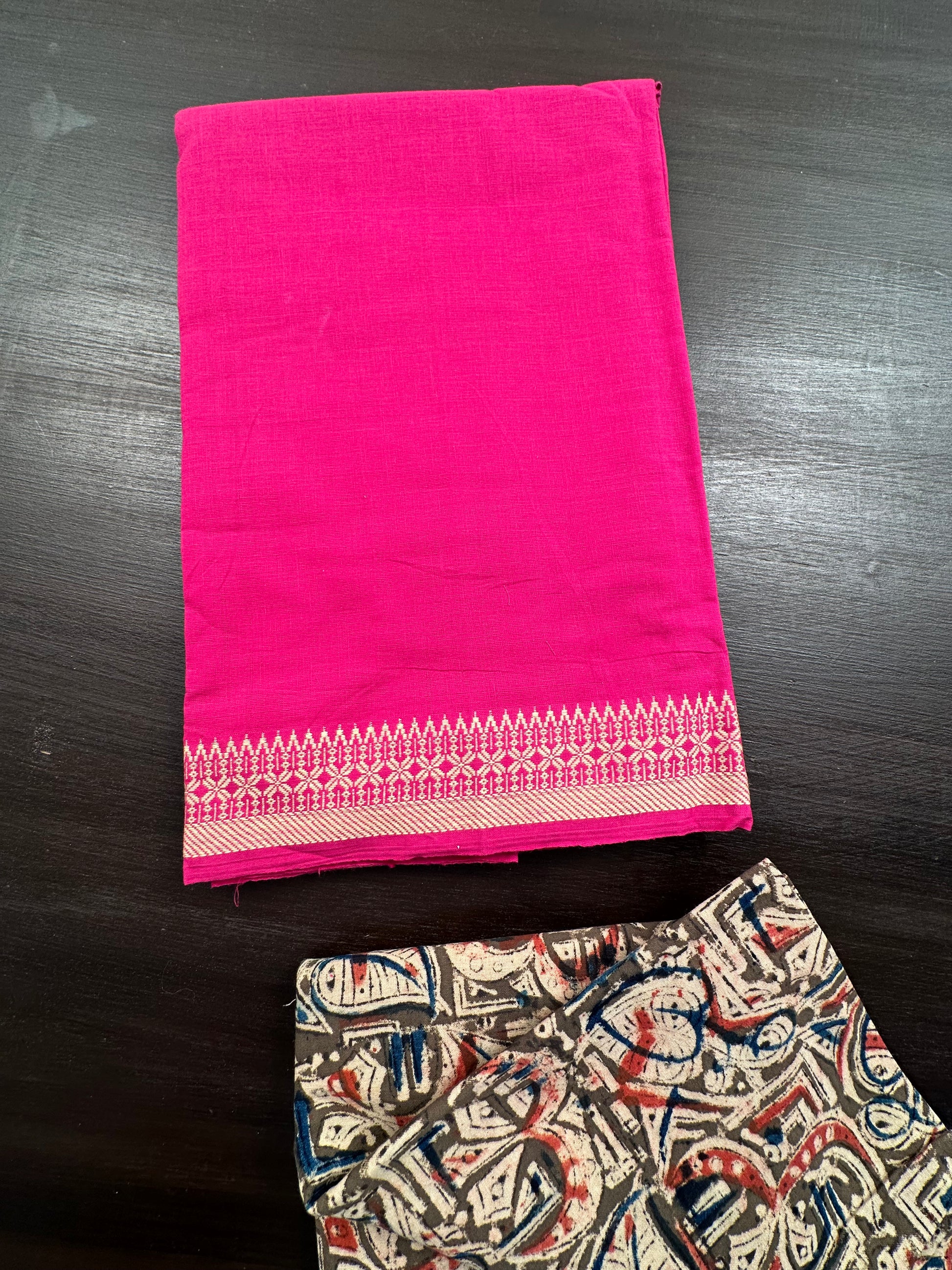 Rani Pink Mangalgiri Cotton Unstitched 3-Piece Suit