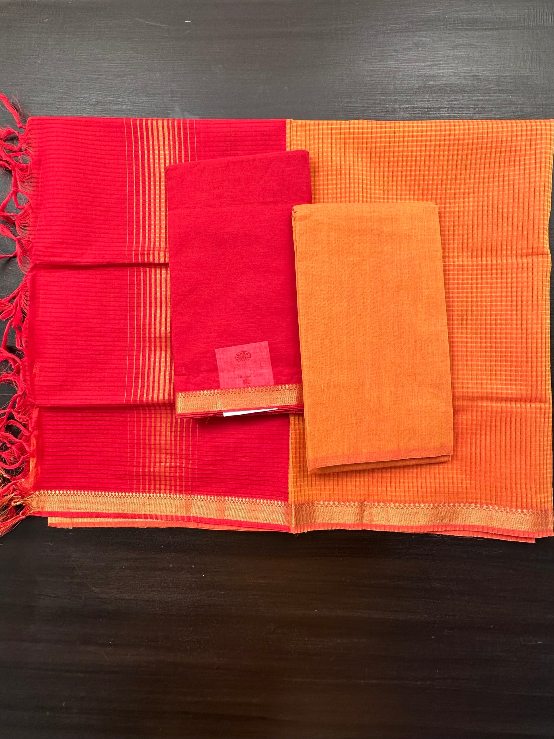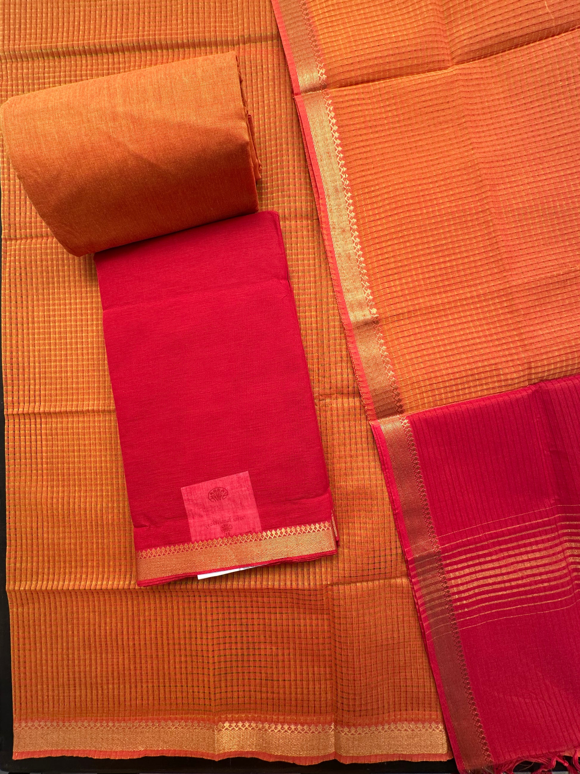 Red-Mustard Mangalgiri Pure Cotton Unstitched 3-Piece Suit