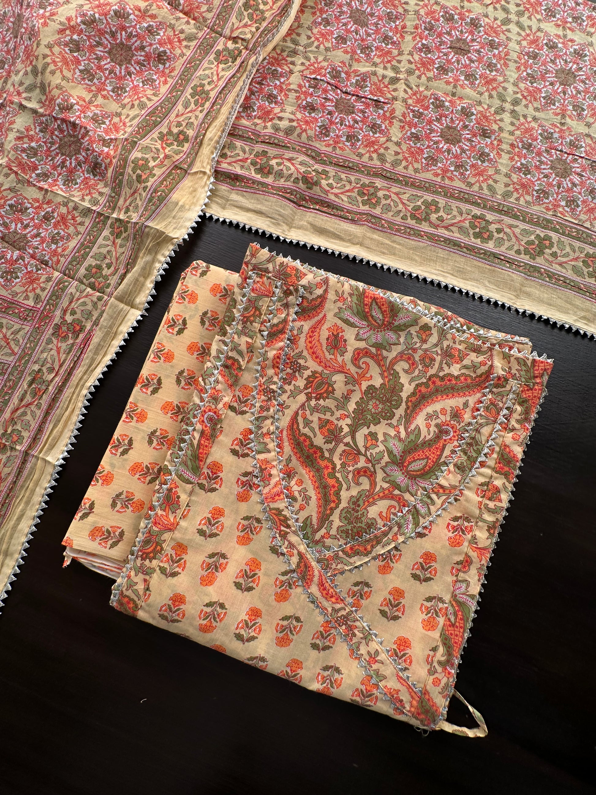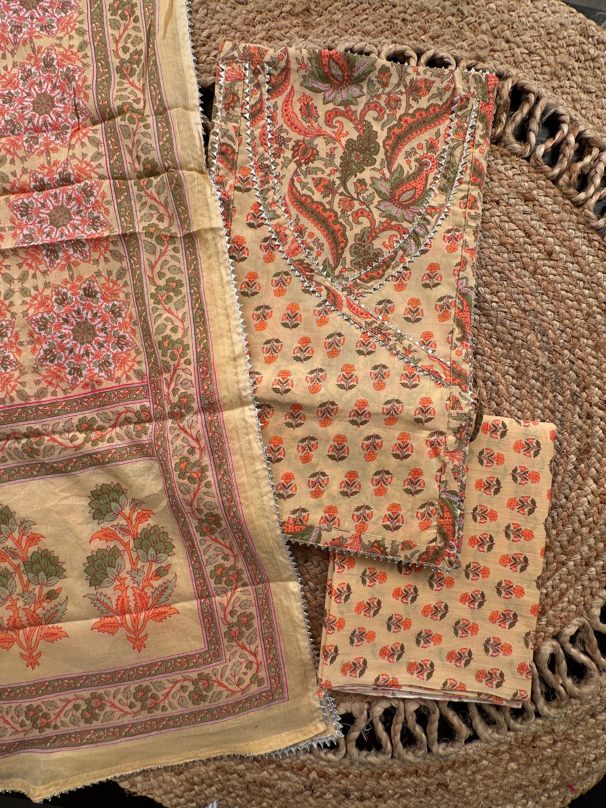 Concept: Angrakha Printed Cotton suit with Cotton Dupatta