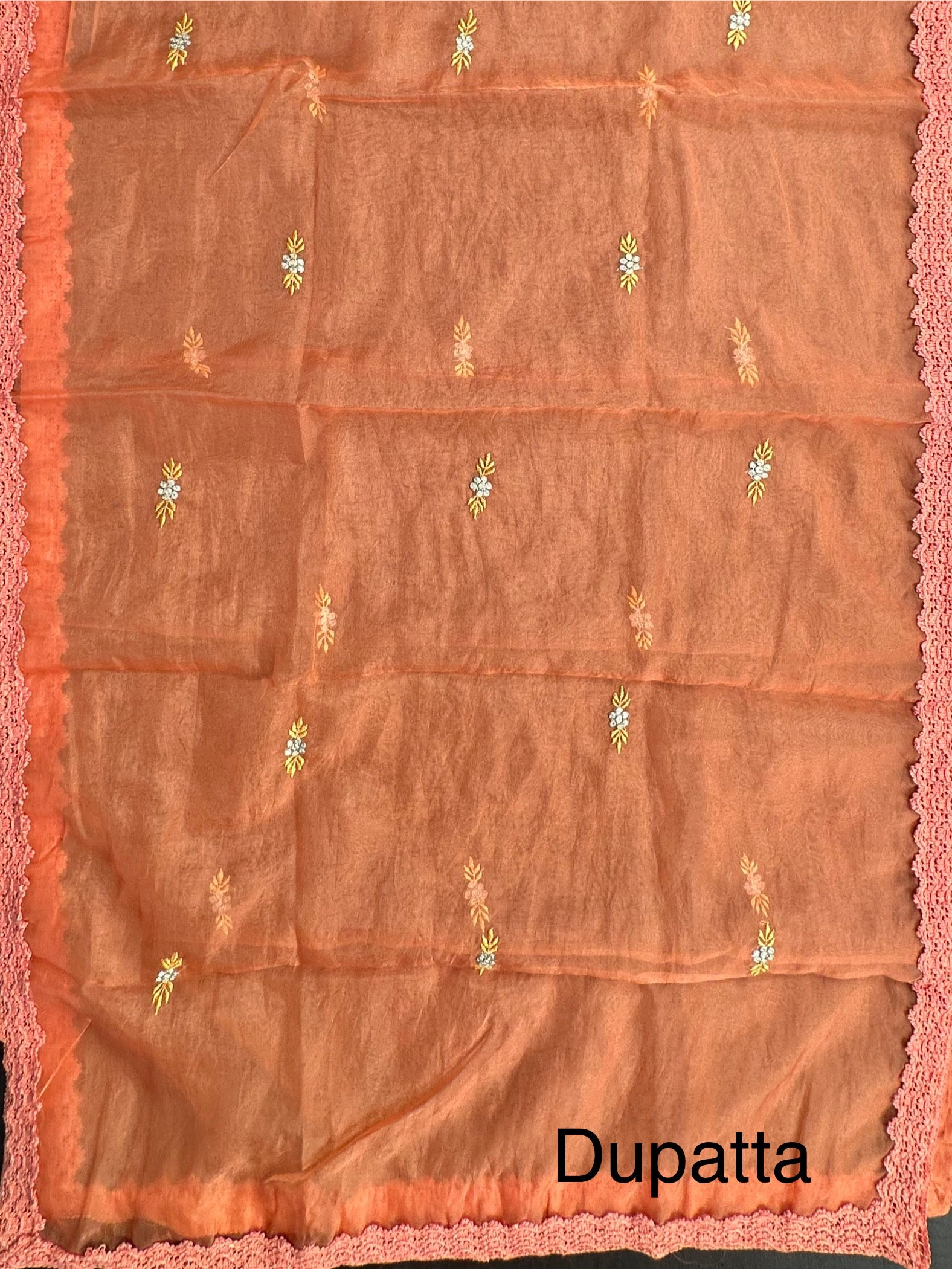 Concept:: Pittan Work Cotton Suit with Organza Dupatta