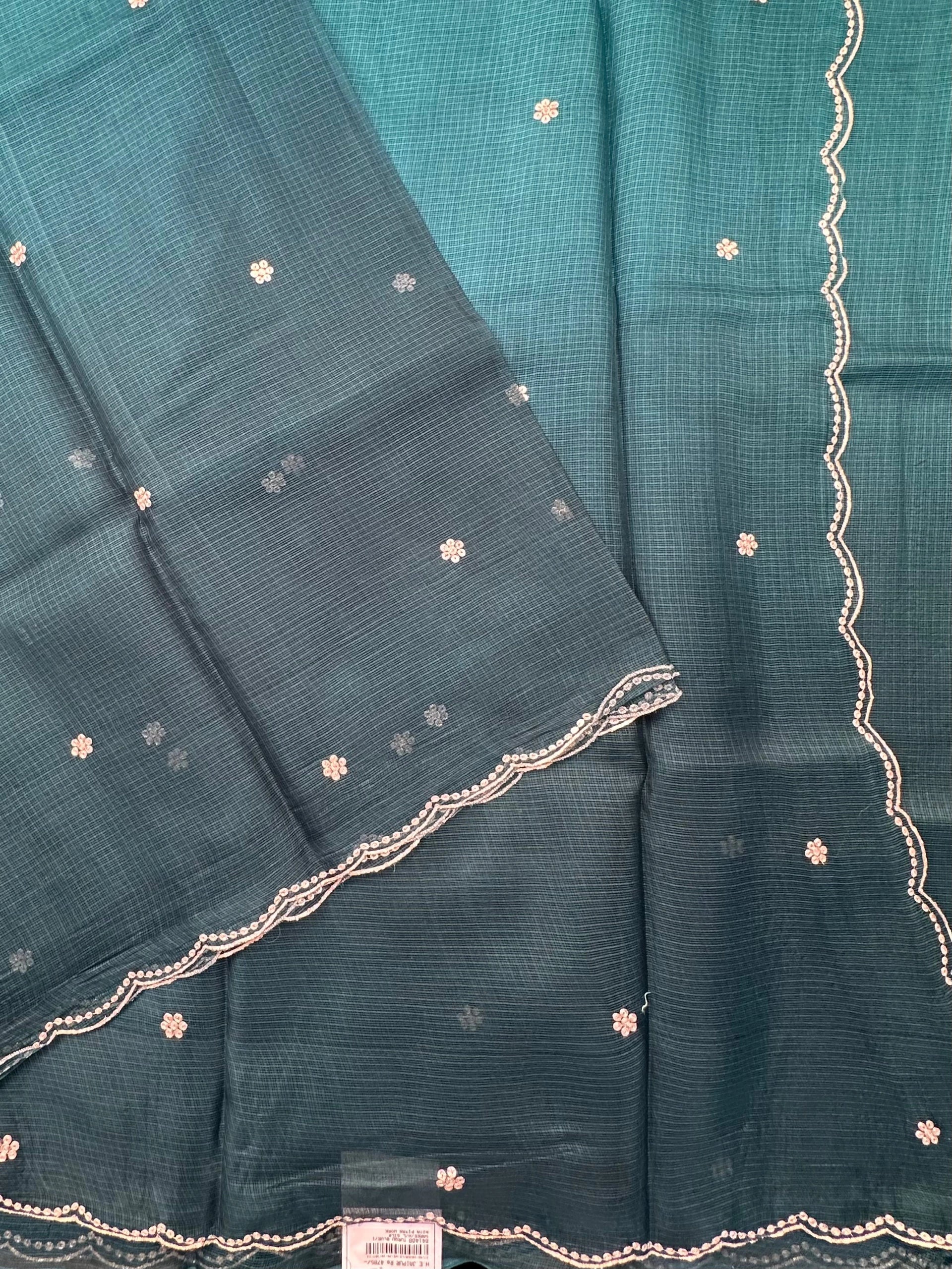 Turquoise Blue Gitika Kota Doria Pure Silk Saree