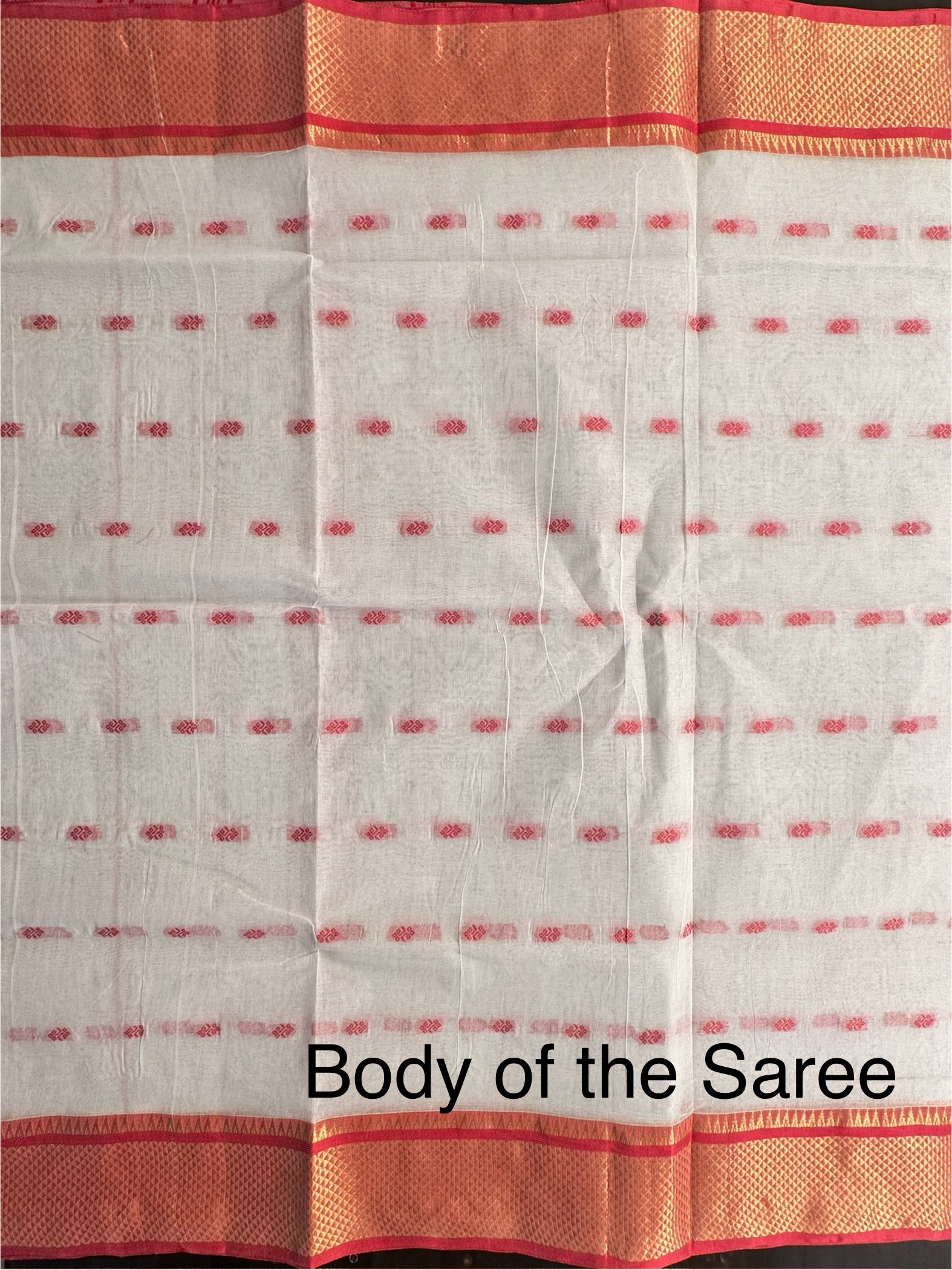 Weaving discontinuations are common in handloom sarees (read: handwoven sarees), they are not defects, It’s the nature of handloom sarees.