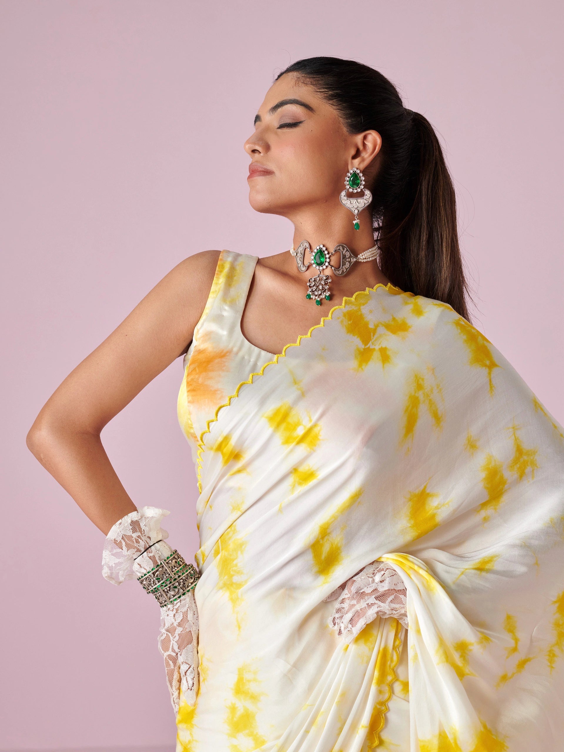 Style: Yellow Abstract Shibori Saree with Scalloping