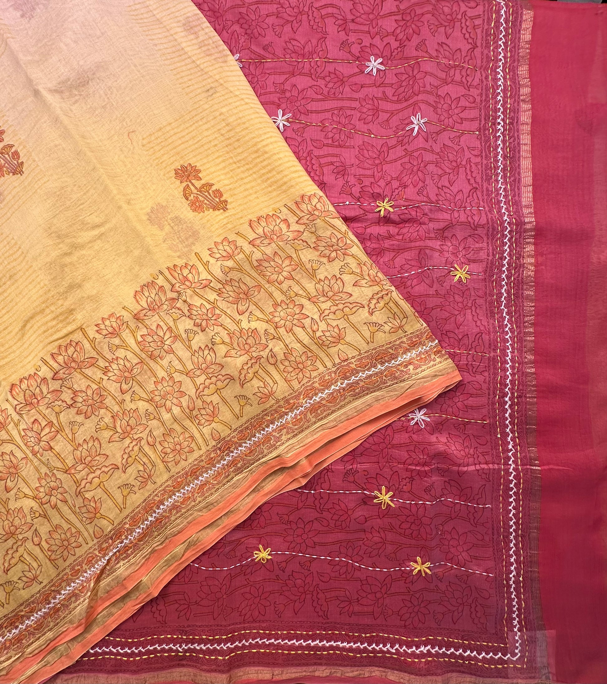 Style: Block Print Chanderi Saree With Kaantha Stitch